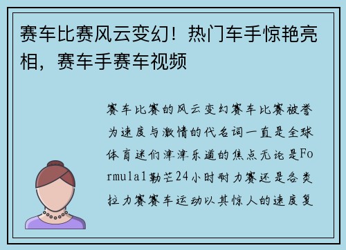 赛车比赛的风云变幻 赛车比赛,被誉为“速...