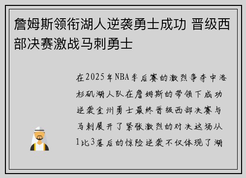 2025年NBA季后赛,湖人队在詹姆斯的...