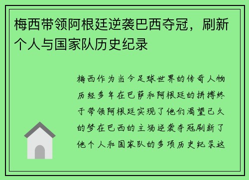 梅西,作为当今足球世界的传奇人物,历经多...