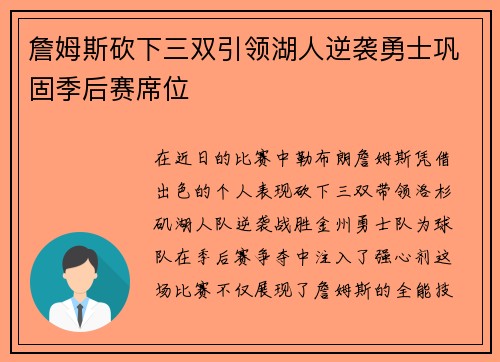 在近日的比赛中,勒布朗·詹姆斯凭借出色的...