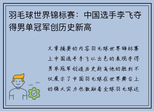 文章摘要的内容:羽毛球世界锦标赛上,中国...