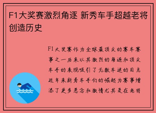 F1大奖赛作为全球最顶尖的赛车赛事之一,...