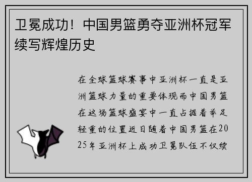 在全球篮球赛事中,亚洲杯一直是亚洲篮球力...
