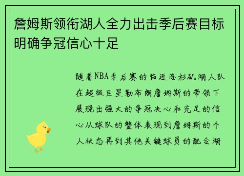 随着NBA季后赛的临近,洛杉矶湖人队在超...