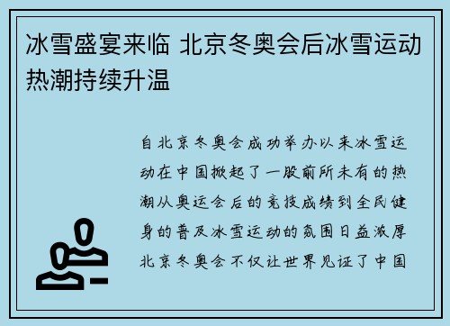 自北京冬奥会成功举办以来,冰雪运动在中国...