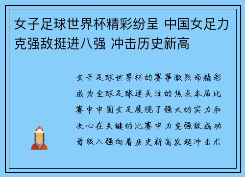 女子足球世界杯的赛事激烈而精彩,成为全球...