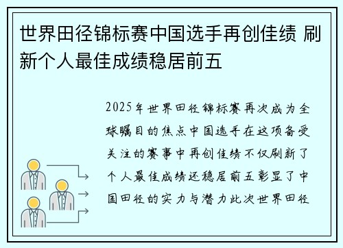 2025年世界田径锦标赛再次成为全球瞩目...
