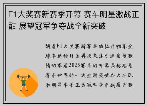 随着F1大奖赛新赛季的拉开帷幕,全球车迷...