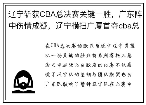 在CBA总决赛的激烈角逐中,辽宁男篮以一...