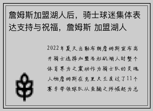 2022年夏天,当勒布朗·詹姆斯宣布离开...